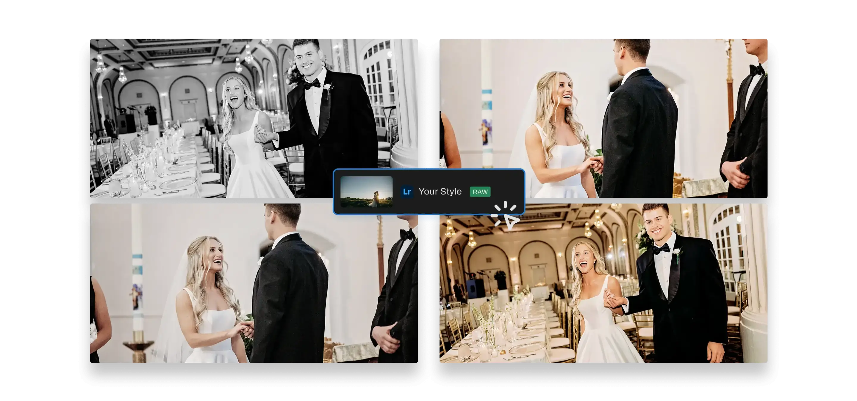 Select from a collection of pre-built AI Styles that intelligently analyze and adjust for the unique lighting, exposure, and color profiles of each photo, ensuring consistent results tailored to your portfolio.