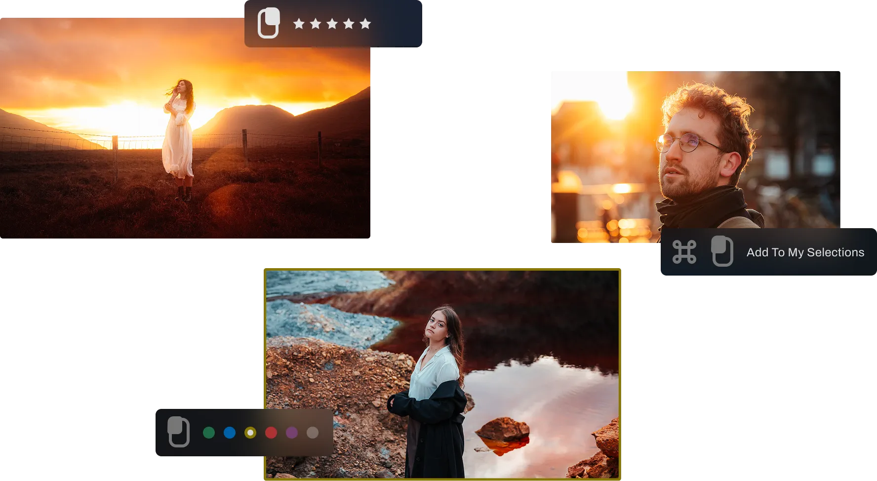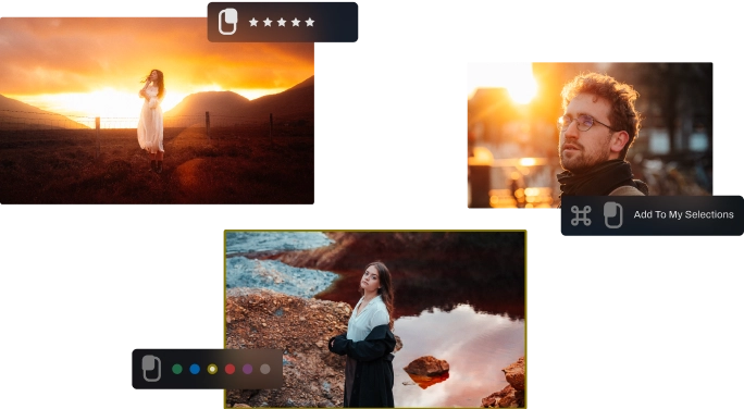 Add to “My Selections”, reject, swap, or sort photos into multiple categories instantly.