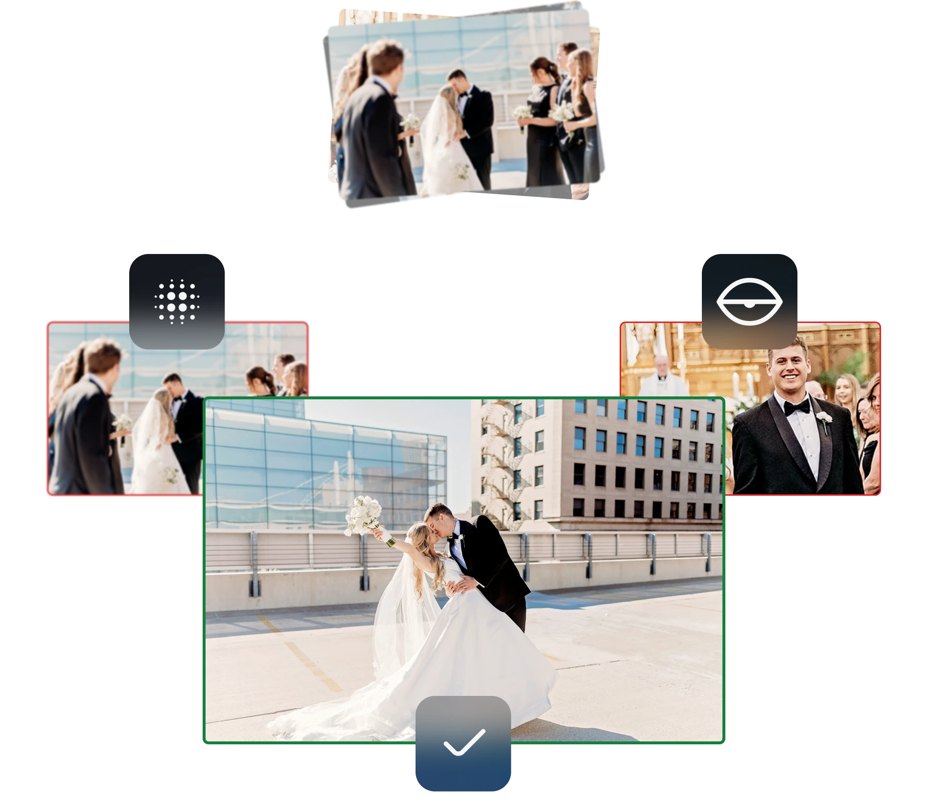 Save time with AI that analyzes 30+ factors to select and rank your best photos – filtering duplicates, blurry shots, closed eyes, and more. All within hours, not days, so you can focus on what matters most.